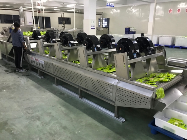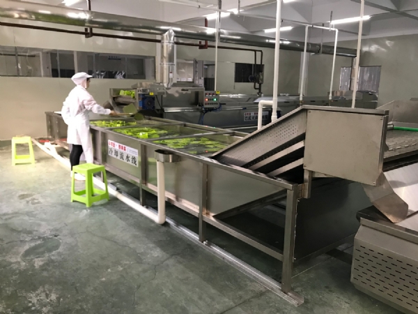 包裝好的筍進入巴氏殺菌流水線后進入冷卻流水線,再進行翻轉(zhuǎn)風干機攤晾吹干剩余水分